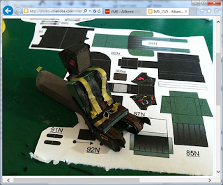 I made the mall façade with a 5mm plastic sheet and treated with acrylic colors. I created the divisions (squares) with a hobby knife. The clear parts are made of acrylic plastic. I made the lettering with bond paper cut with hobby knife (from my days on paper-scale-modeling). The Gundam Café logo is made with an actual Bandai Gundam V-fin (the “antennas” in the forehead of Gundam mechas, a reminiscence of the Samurai’s “kuwagata”) and paper. The screen is an Amazon Fire tablet, that when connected to the Inter-net, I log in to my Netflix account and play the Gun-dam Unicorn series on it.